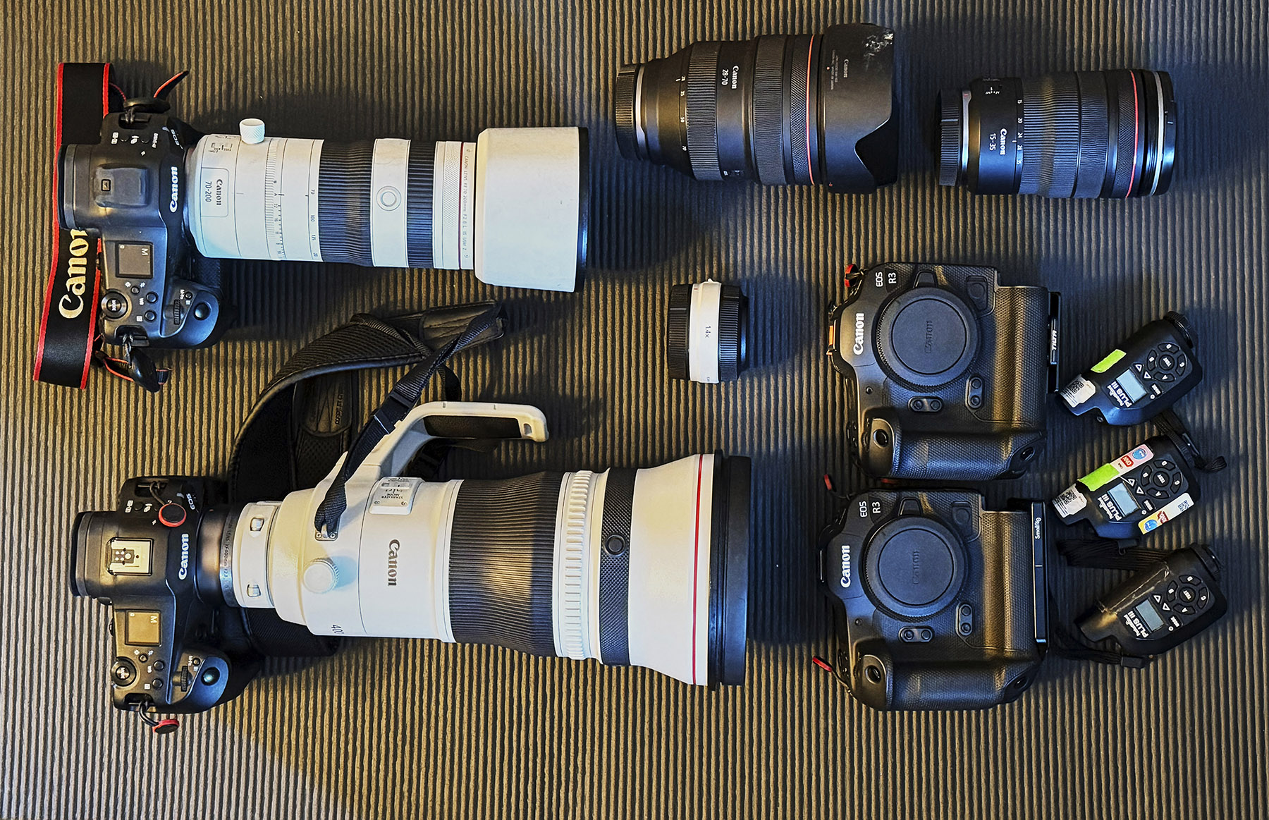 基本はCANON EOS R1を2台、400mmまたは 100–300mm、1.4倍テレコン。