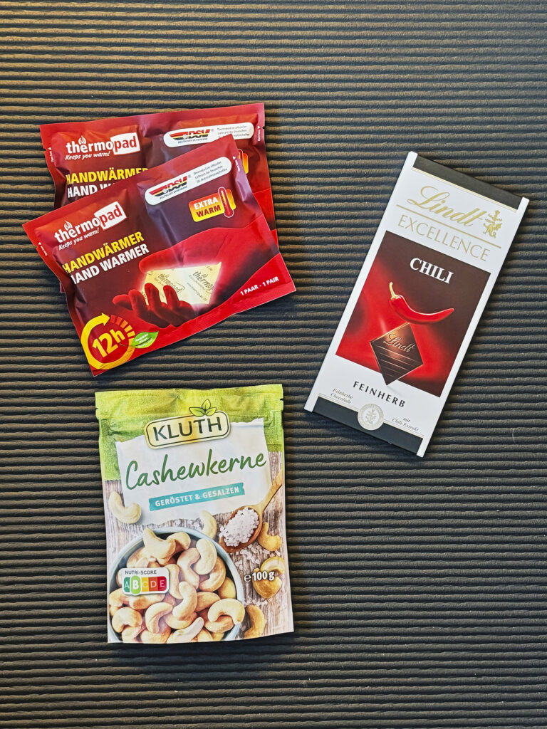 寒さはバッテリーを急速 に消耗させるので予備は多めに持ちます。