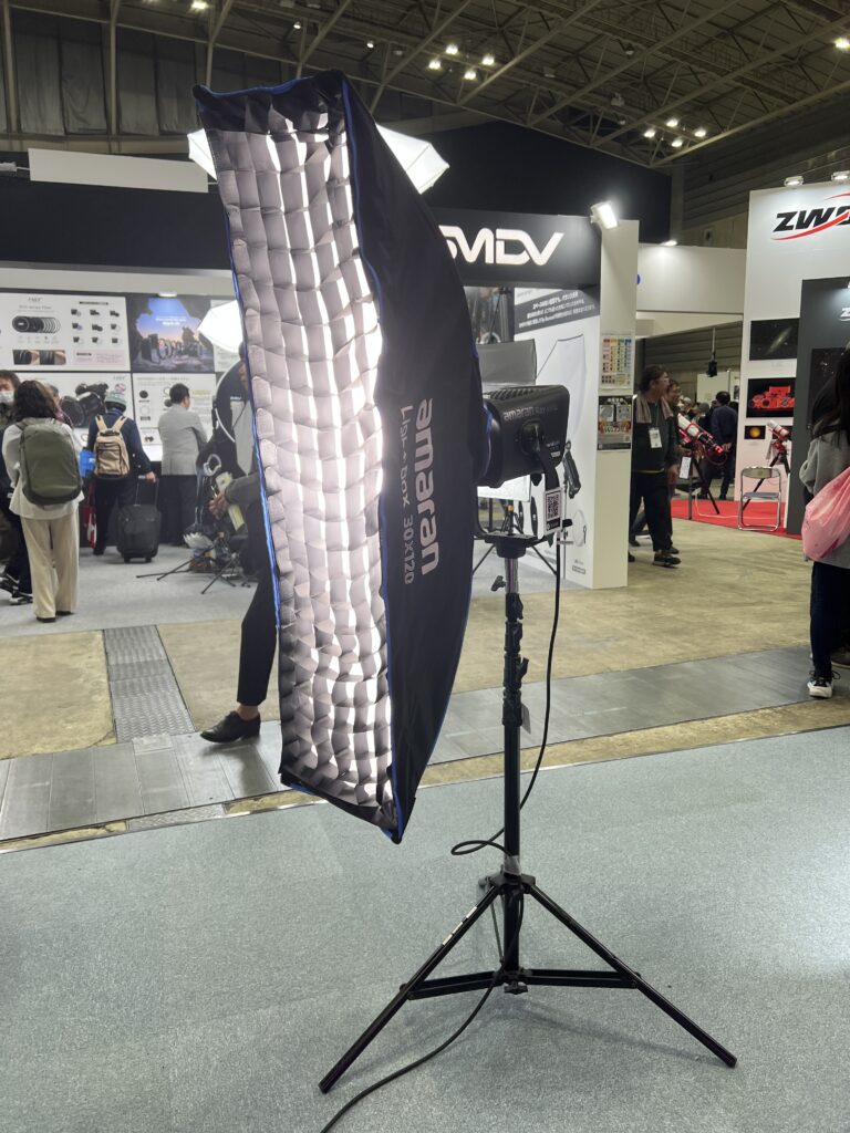 パシフィコ横浜で開催された「CP+2026」。アガイ商事ブースでは、Aputureの兄弟ブランド「amaran(アマラン)」の新型LEDライトを中心に、撮影現場の利便性を高める機材が多数展示されていた。