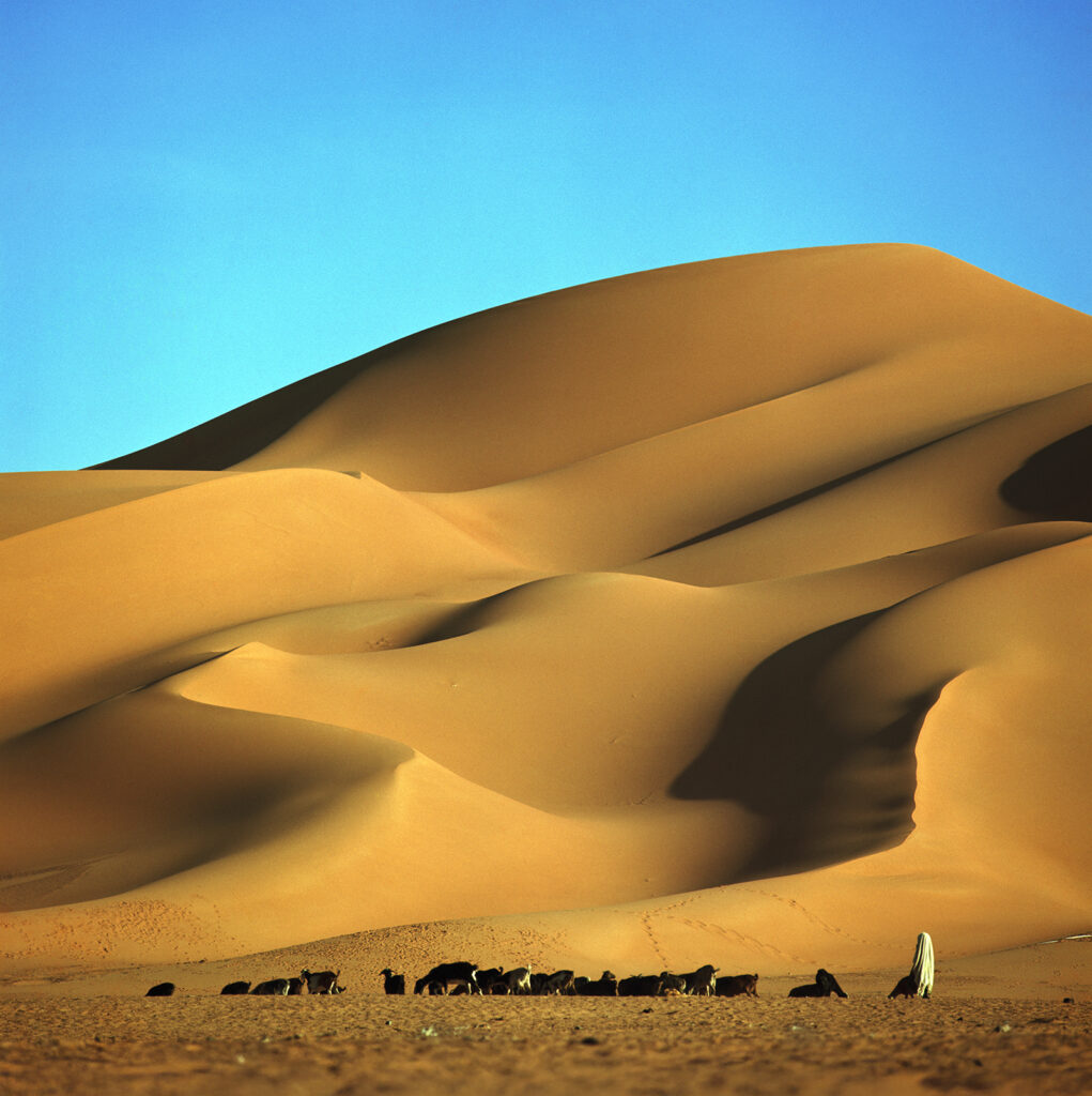 野町氏は、1972年、25歳の時にサハラ砂漠を訪れ、大きな転機を迎えた。辺境に関する情報が乏しい時代、出会った旅人と地図を分け合うような行程のなかで、野町は蒼穹の下に開けた地平線と、古来より連綿と続く人々の営みに魅せられていく。