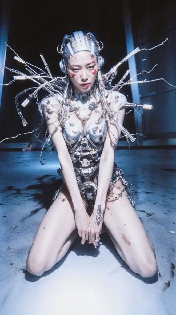 草野氏は、サイバーパンク哲学と仏教思想における「空」や「縁起」といった東洋的な概念を融合させ、自身の顔や身体をAIに学習させたカスタムモデルを構築。実際には存在しない「架空の幼少期」を生成するプロセスから制作をスタートさせている。