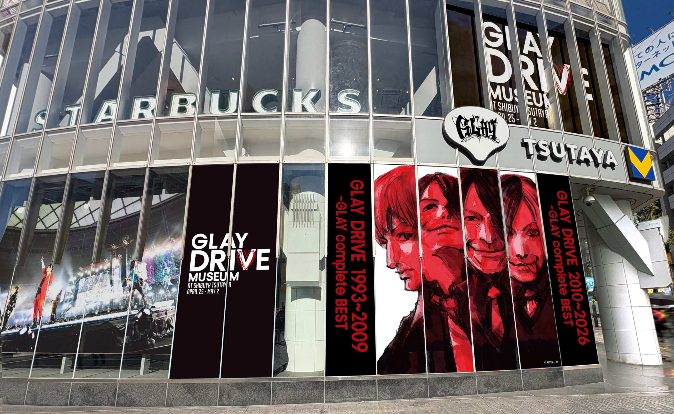 4/23(水)に発売された、GLAYの30周年記念ベストアルバム『DRIVE 1993~2009 -GLAY complete BEST』・『DRIVE 2010~2026 -GLAY complete BEST』の発売を記念して、SHIBUYA TSUTAYAで特別展示「GLAY DRIVE MUSEUM」および、コラボレーションカフェ「GLAY DRIVE CAFE」が期間限定でオープン。