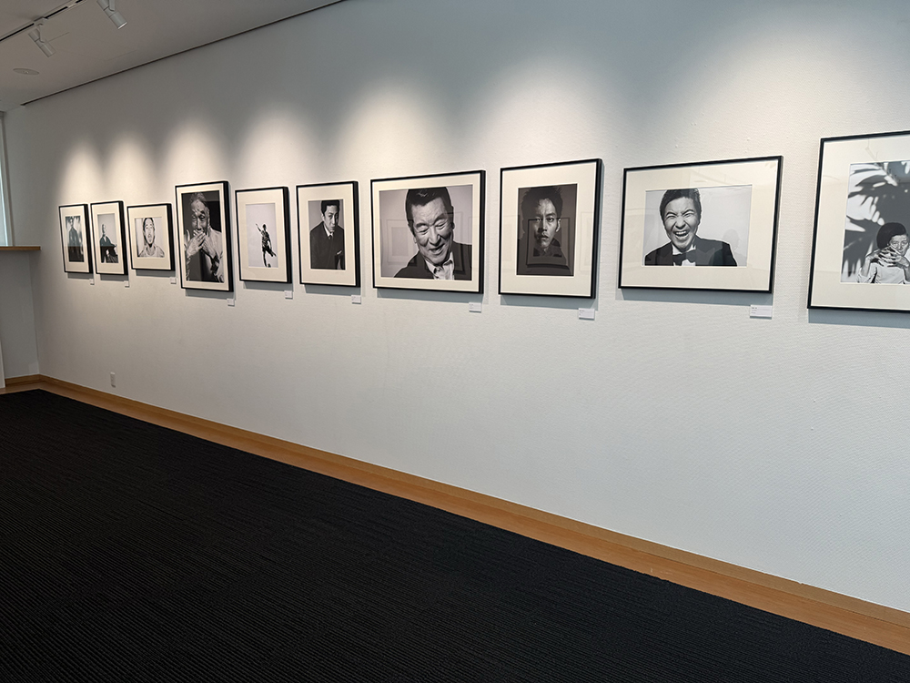 展示空間に足を踏み入れると、まず目に飛び込んでくるのは壁一面に整然と並ぶモノクロポートレイト群。