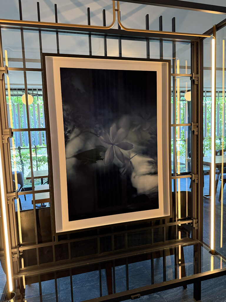 ホテル内ロビーでは、「LUMIÈRE」シリーズの一部が、穏やかな時間の流れる空間に静かに展示されている。
