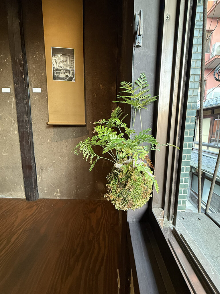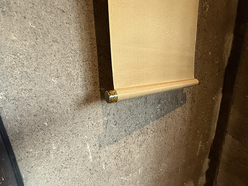 ギャラリーの窓から入ってくる風で、掛け軸が揺れ、陶器製の陣棒が展示壁面に当たると、コーンと心地の良い音を奏でる。