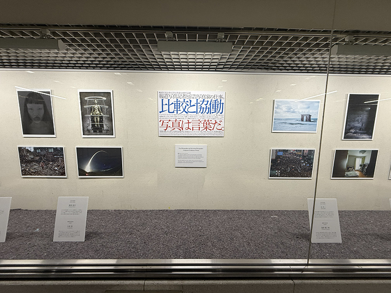 烏丸御池駅3、4出入り口を降りた場所に展示されている報道写真記者15名と広告写真家15名の写真による比較作品展。