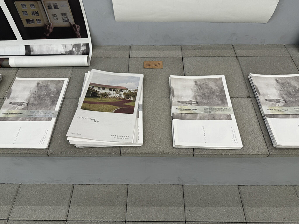 この「わかちもつ言葉と風景」では、「悼む」「編む」「道程」「間柄」という異なる切り口で4つの展示を行い、それぞれの会場で対応したテーマの新聞(+1種)を無料配布。持ち帰り、別の場所でも読み返し、また展示することができるようなデザインになっている。