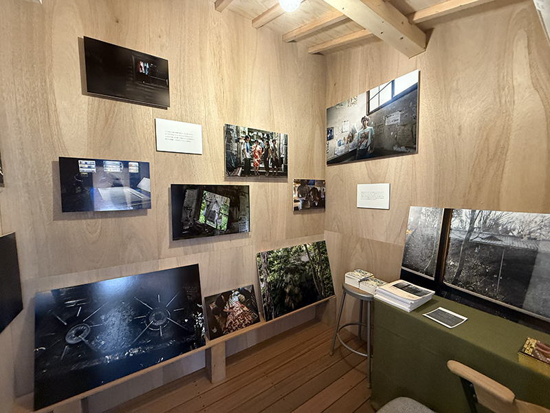店舗内で開催されていたのはダニー・モリオカによる展示。2017年から京都大学吉田寮に通い続け、寮生やそこに集まってくる人々、寮内の様子を撮影している。そこでの会話を文章化したテキストとともに展示している。若者たちが自由に過ごす様子が捉えられていた。