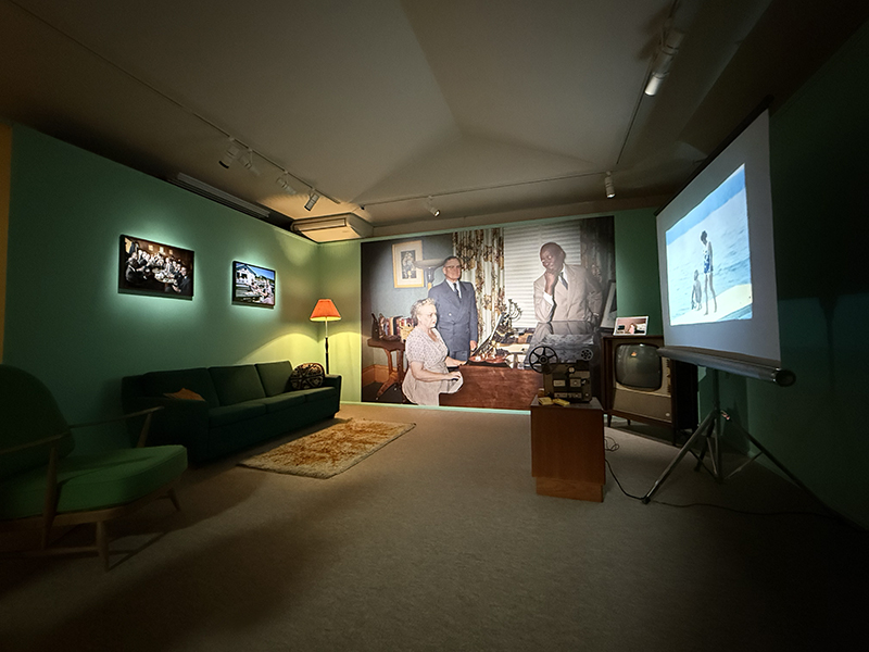この作品は、1950〜60年代のアメリカで実際に撮影されたホームパーティーやビーチ、スキー旅行、ゴルフ場での1コマなどの写真に、オマー自身が“後から”登場人物として合成されたもの。