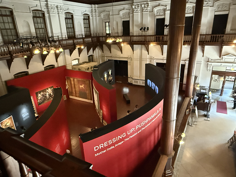 この壮麗な建築物の中では、インドを拠点に活動するアーティスト プシュパマラ・Nの作品群が並ぶ。