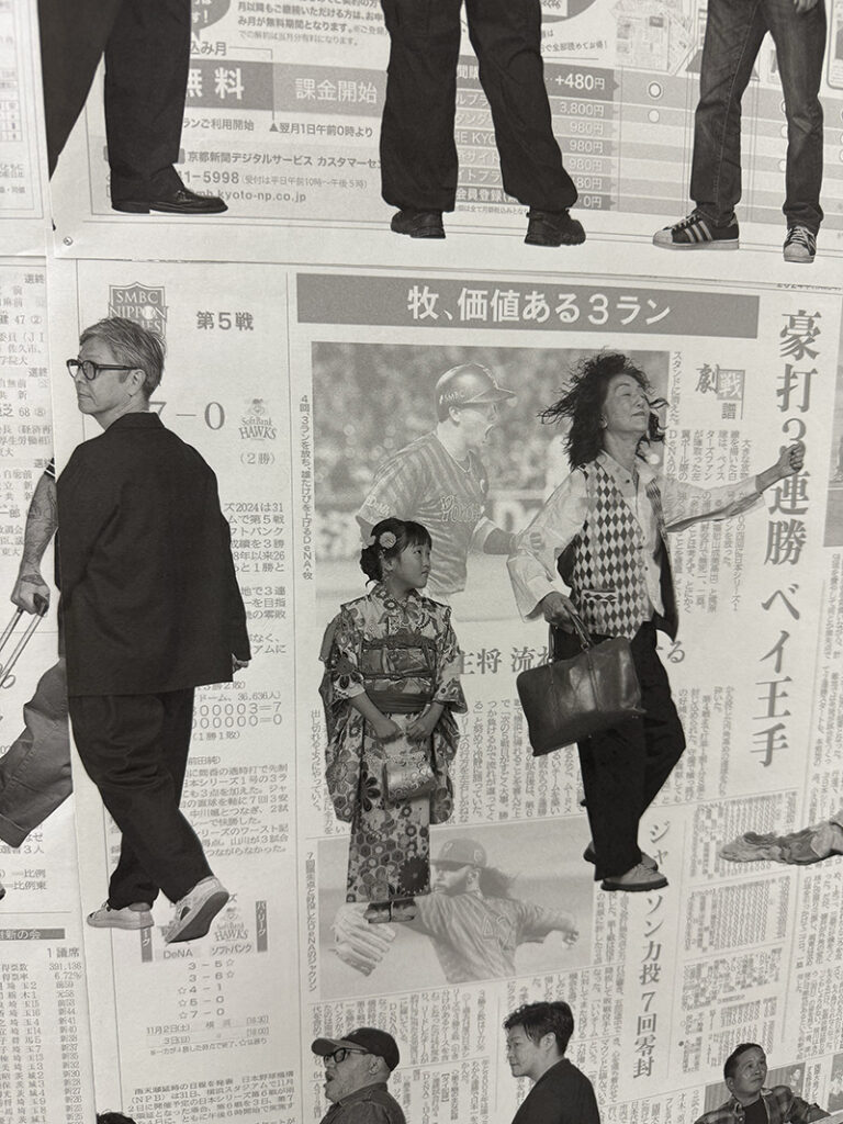 2週間にわたる滞在制作の中で、地元の人々と交流しながら、寺院やお茶屋、料亭、鴨川沿いなど、京都らしい風景の中で作品を生み出した。作品には、京都という場所へのリスペクトと、そこに溶け込むアーティスト自身の喜びがにじんでいる。