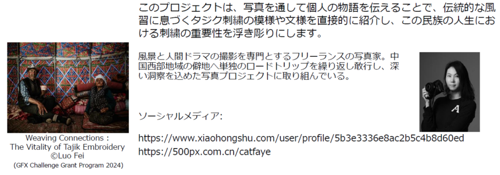 富士フイルムが主催する「GFX Challenge Grant Program 2024」は、世界各国・地域で活躍するクリエイターの創作活動サポートを目的とした助成金プログラムだ。
