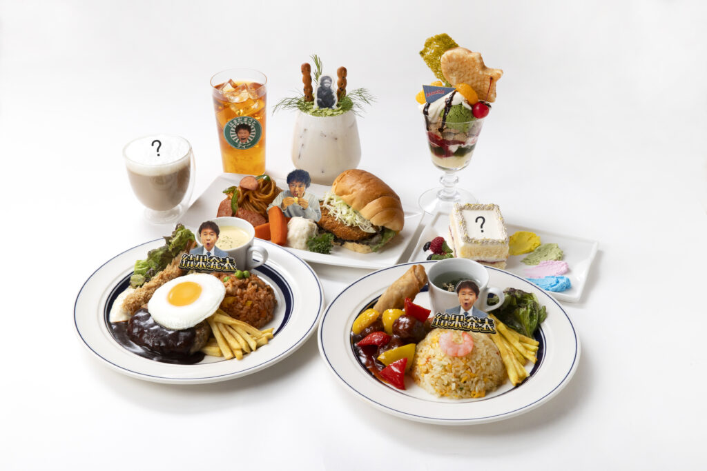 コラボカフェ「喫茶 はまだまさとティー」では、浜田雅功の表現する独創的な世界をさらに深く楽しんでいただくため、展覧会のテーマと連動したオリジナルメニューを用意。