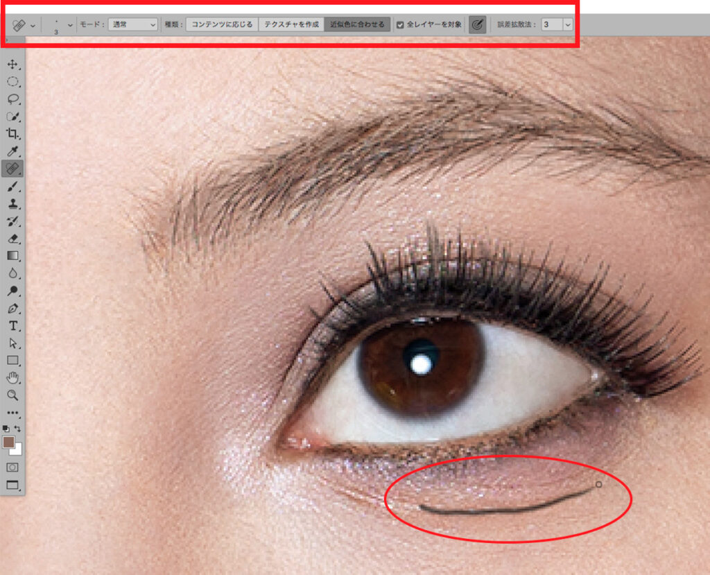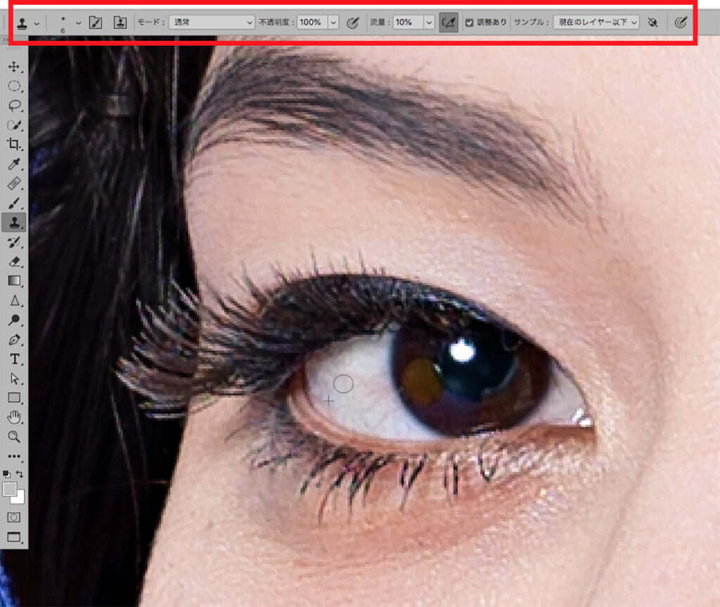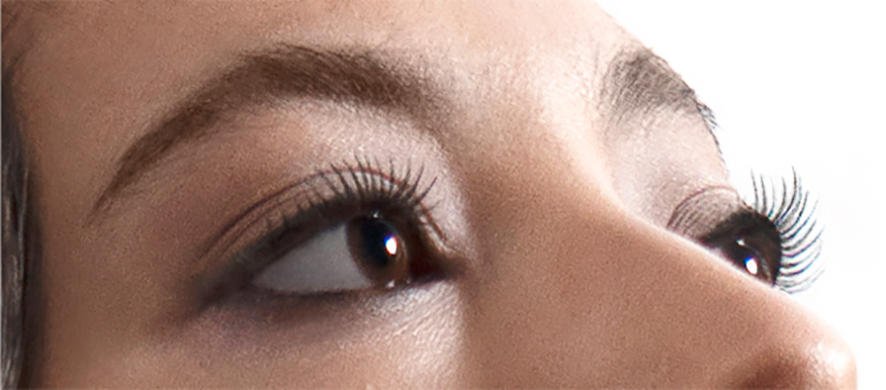それでは、イメージカットの目元、まつげ、眉毛のチェックポイントを修正してみましょう。