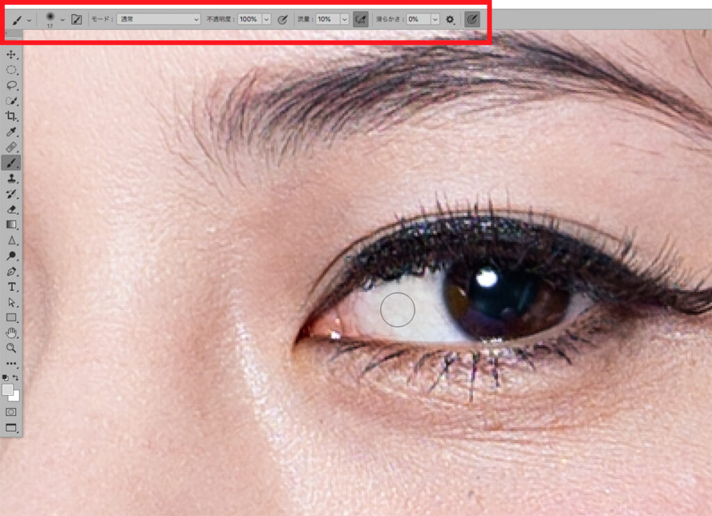 白目の濁りは、理想の色をスポイトツールで拾ってブラシツールで描きます!