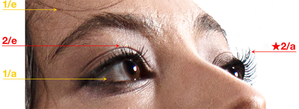 第1弾の今回は、メソッド1〜3の目元・まつげ・眉毛について細かく説明していきます。1つ1つのポイントは個別にチェックするのですが、チェックポイントごとに、必ず全体のバランスを確認することを忘れないでください。