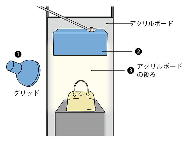 背景はアクリルボードに60×60 cmのバンクライト❸をぴったりとつけて、
