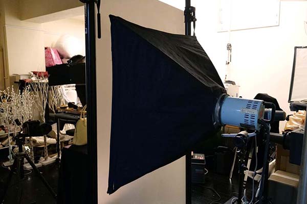 左斜め上からグリッド付きリフレクターで明暗=光の方向を作る。