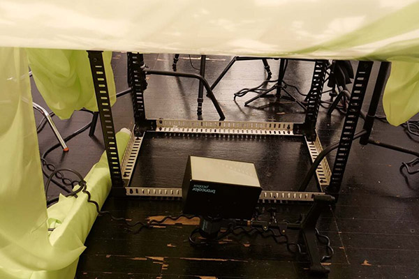 180×90cmのアクリルボードをしならせて撮影をつくる。