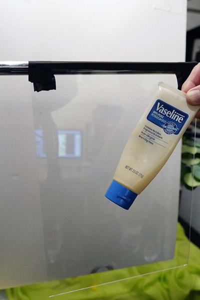 ワセリンをガラス表面に塗り、部分的に写真の色を滲ませる。