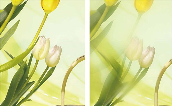 部分的ソフトフォーカスの面白さだけでなく、周囲の花のディテールを滲ませて主張を弱めることで、