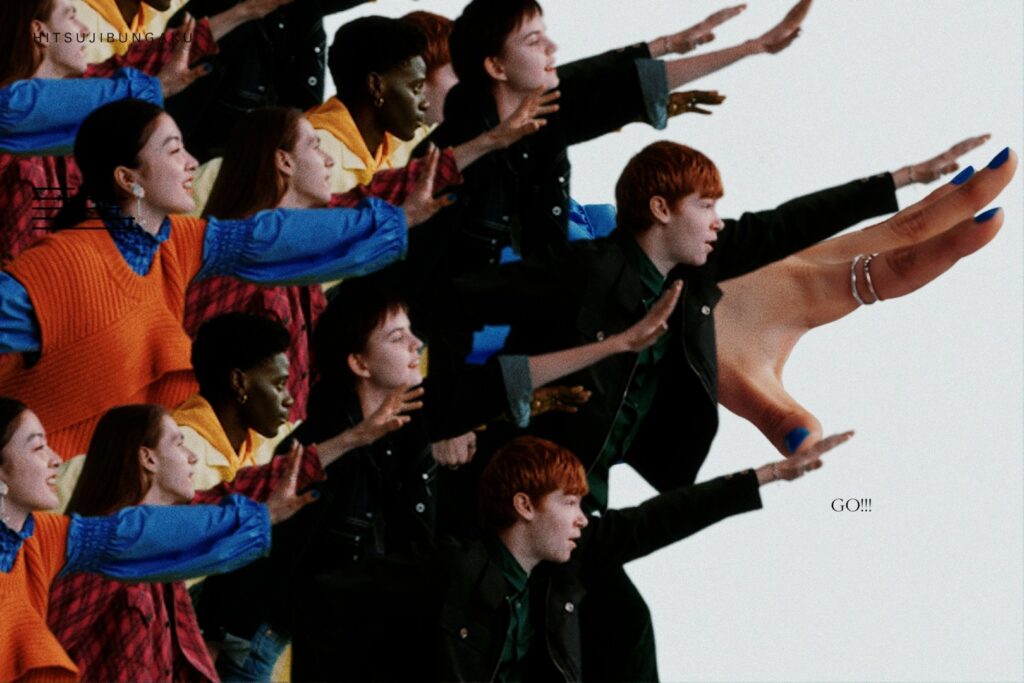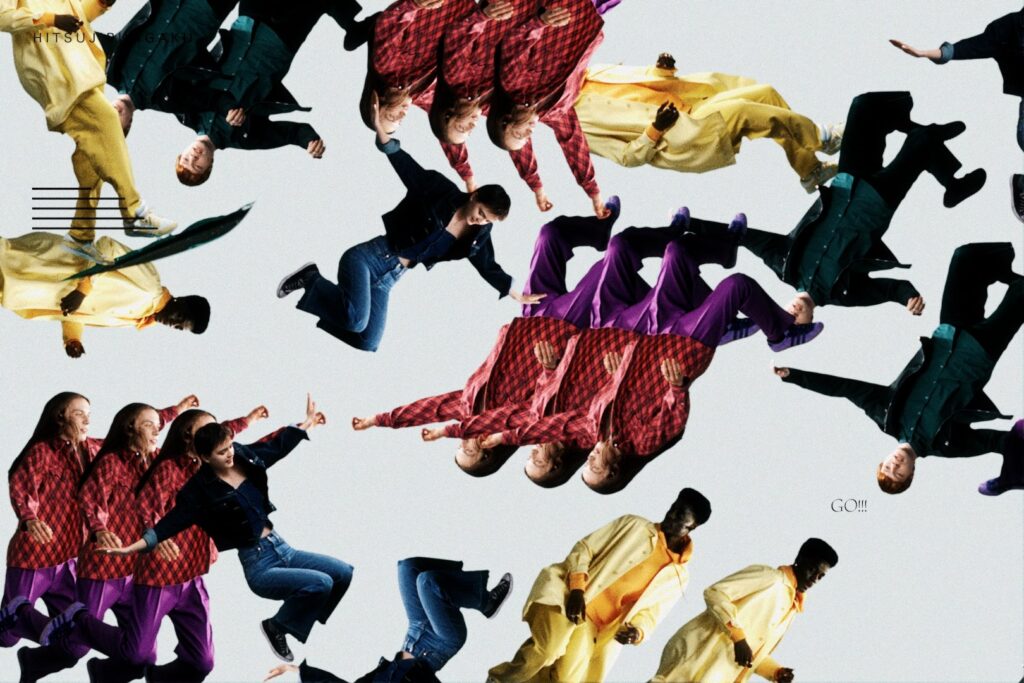 林 曲のタイトルや「一斉にgo!」というフレーズから、たくさんの人がいるイメージが浮かびました。パースを気にせず白い背景に人をたくさんコラージュするとかわいくなりそうだし、曲の雰囲気にも合いそうだなと。そういうところからだんだん着想してできあがりました。 「レゴみたいだな」とか「文字が増えたら面白そうだな」とか、MVはそういう”ノリ”も大事だと思っています。