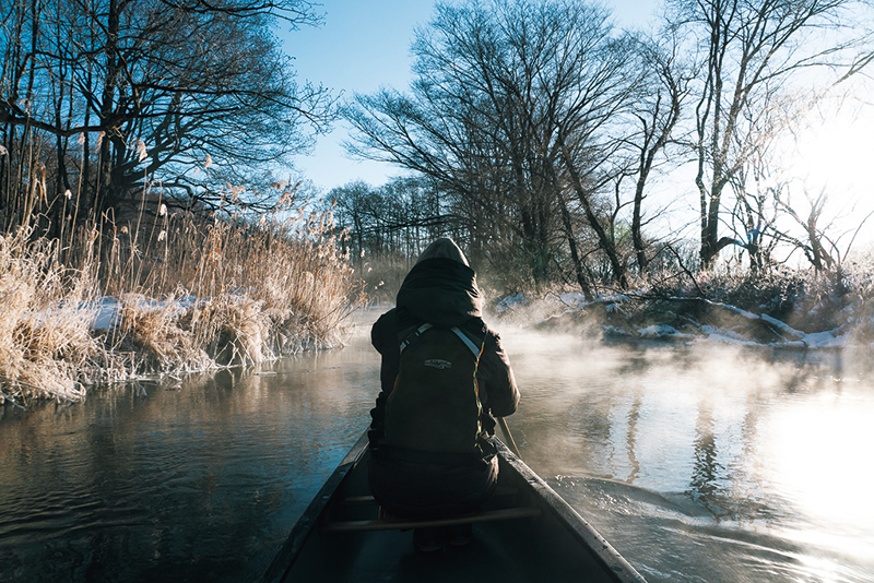 鑓野目 夏は屈斜路湖でカナディアンカヌーのガイド、冬はスノーシューやスキーを使ったスノーハイクのツアーと1年中、お客さんと自然を楽しんでいます。ガイドとして1人立ちしたのは2021年です。独立前はご縁があったカンパニーで働かせていただき、4年間ガイドとしての基礎を学びました。写真の世界と同じように、ガイドの世界でもこの人の仕事を学びたい、と下積みの時代があります。