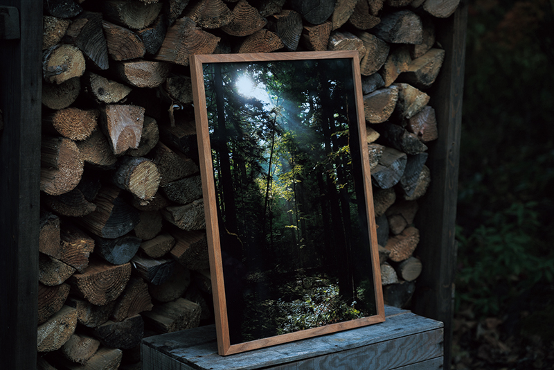 「Instagramなどを通じて作品購入したいと連絡をくれる方もいます。額は元建具師でもあるMOSIRITA代表の鈴木さんがフルオーダーで作ってくれています。窓から森を見るようなイメージで作っていただいています。本当に素敵な額縁です」(鑓野目)