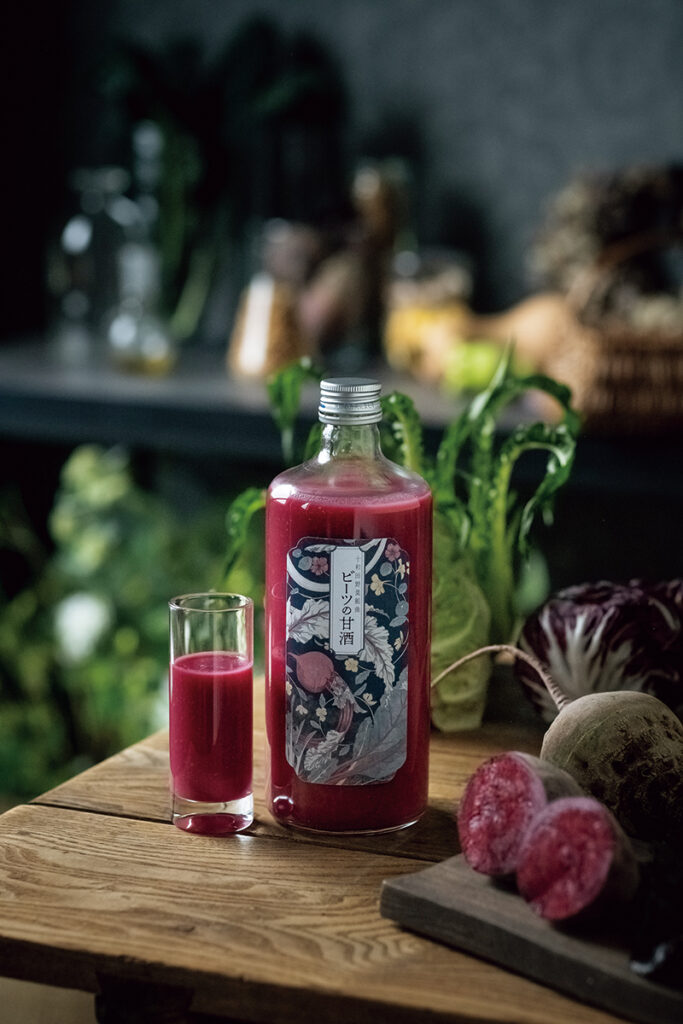 「野菜ソムリエ欠畑睦子さんと弘前大学の共同研究から生まれたビーツの甘酒です。パッケージデザインは十和田市で活動するデザインユニット『字と図』のよしだすすむさんが手がけました」(山本)。