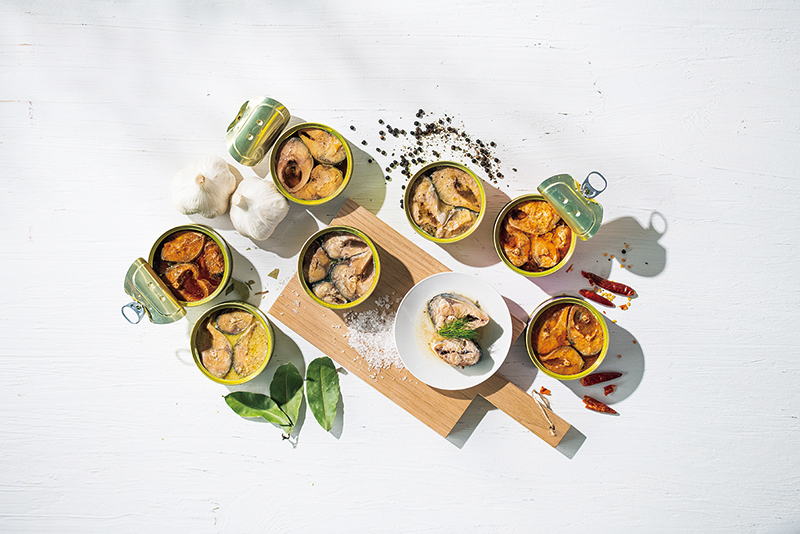 「八戸サバで作られたサバ缶です。津軽海峡の塩、アヒージョ、ゆず胡椒など7種類の味付けがあります。