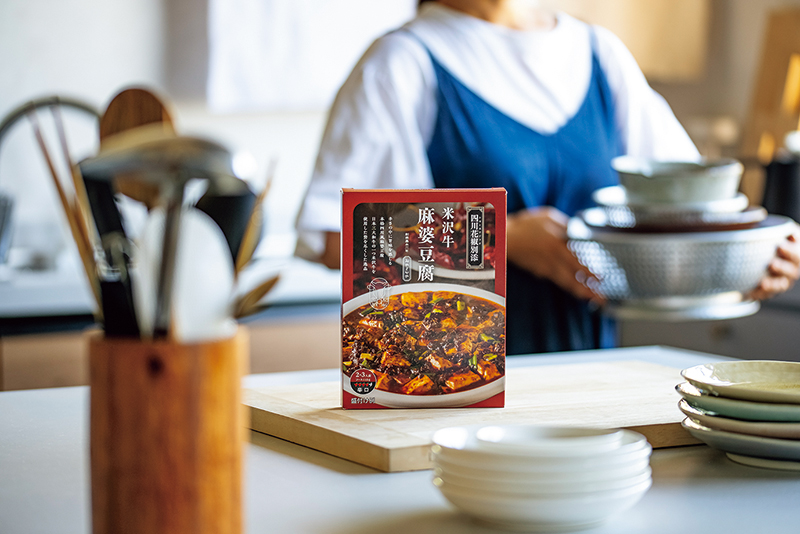 下:タスクフーズ みやさかや 「米沢牛麻婆豆腐の素」パッケージ・KV