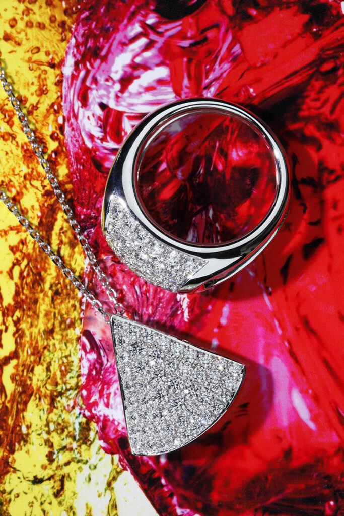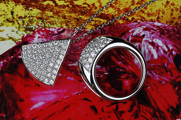 ディフューズしていないライト直光を、バーンドアで絞ってあてることで、ダイヤモンドのきらめきを出した。
