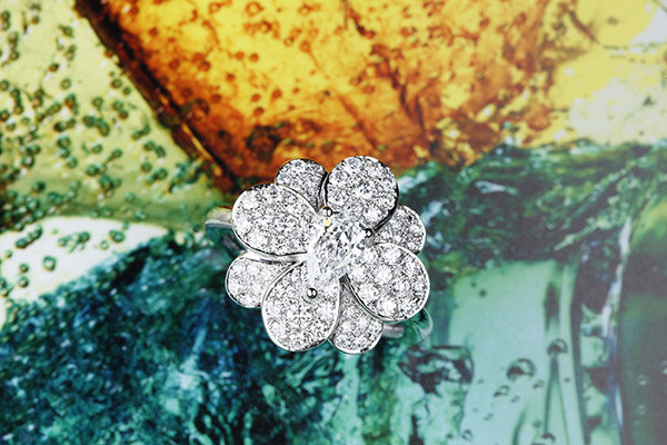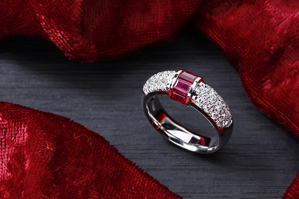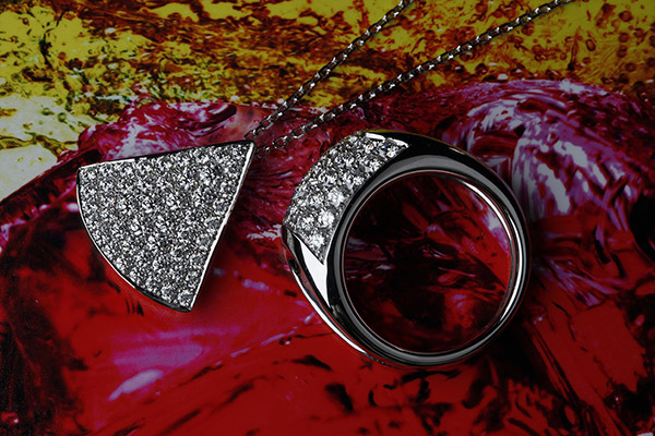 奥斜め上からの光でタイヤモンドのきらめきを強調する。