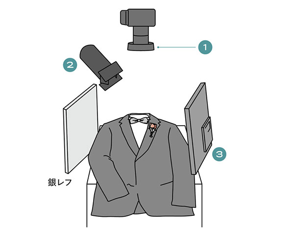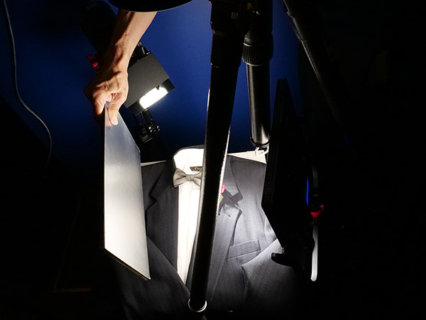 ライト❷でできた右側のシャドーを起こし、銀レフで左側のシャドーを微調整した。