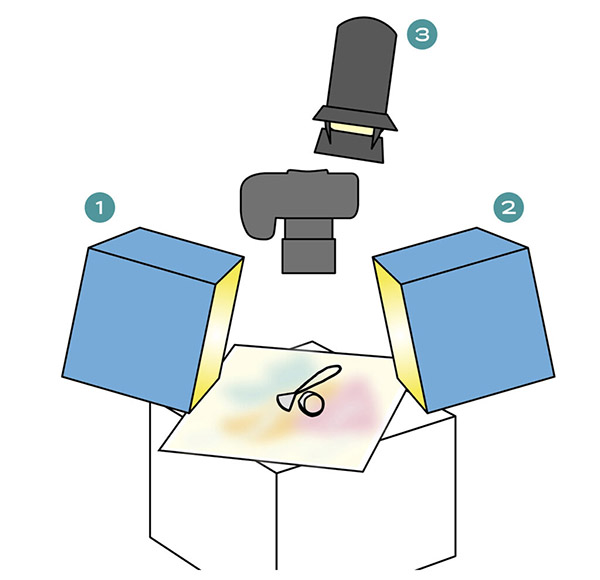 左右から面光源をあてているため、全体が均等に明るくなる。