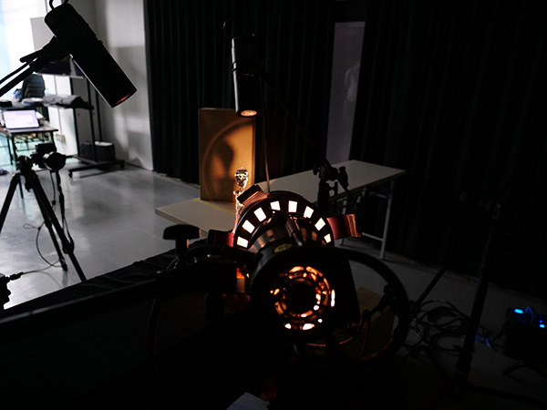 左右対称ライティングだが、ハイライトの幅を変えることで光の方向性を作っている。