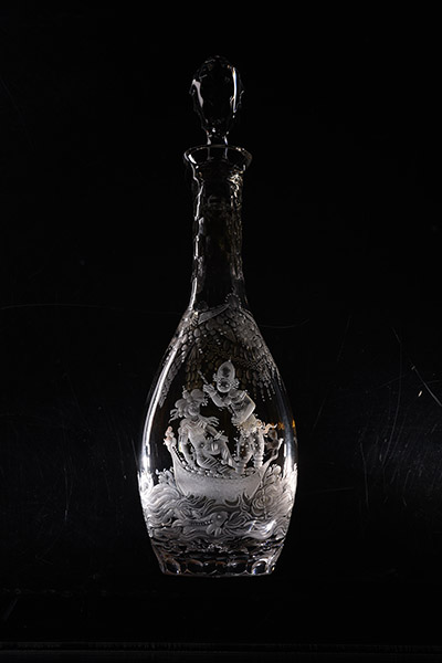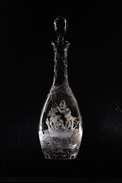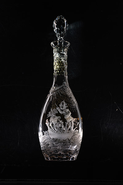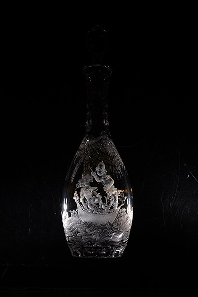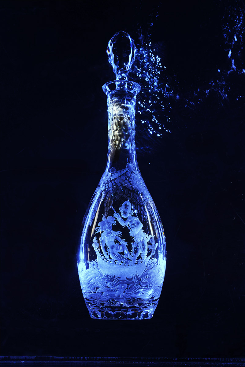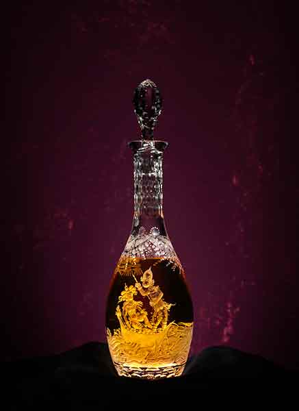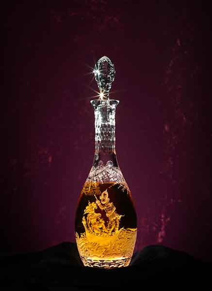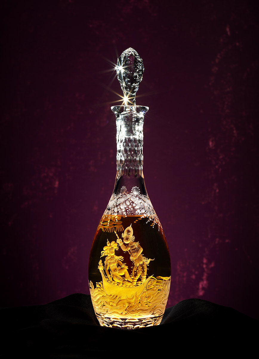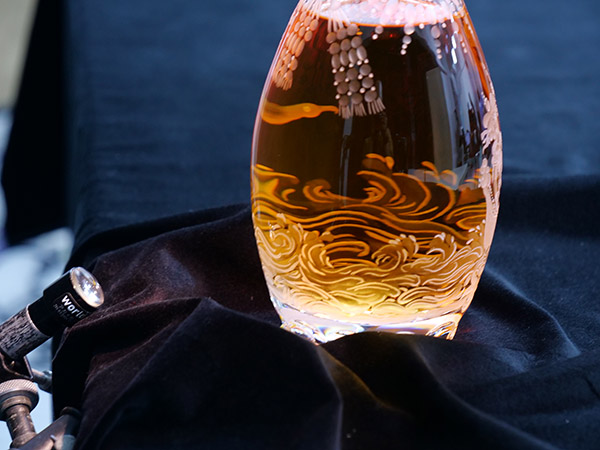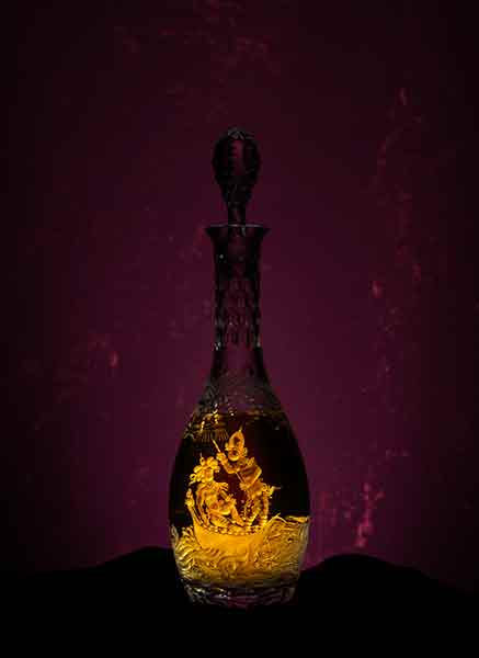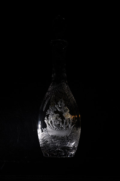 レリーフを浮かび上がらせ、デキャンタ左側面にハイライトラインを入れる。
