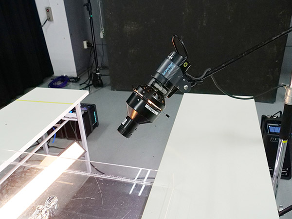 撮影台の後ろに仕込んだ光ファイバーストロボ(フィブロライト)。