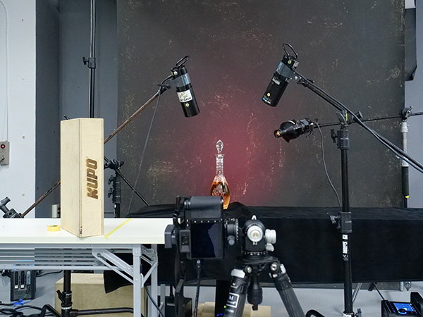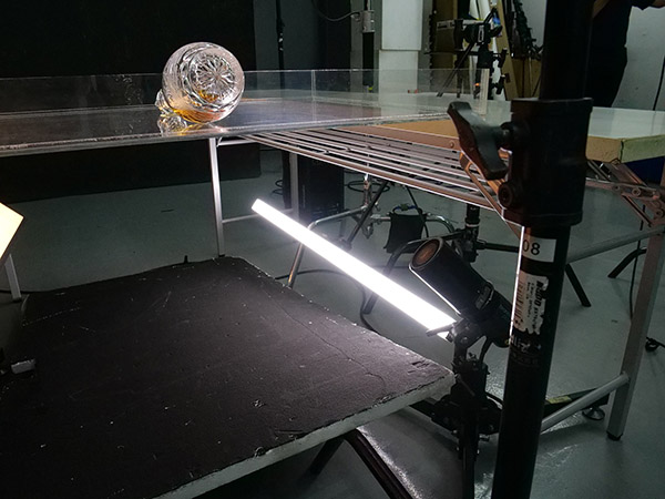 トップからのピンスポットはデキャンタの首の部分に狙いをつける。