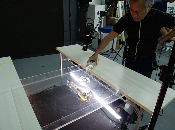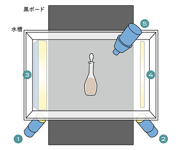 デキャンタ 撮るとしたら 背景にアクリル板を置き