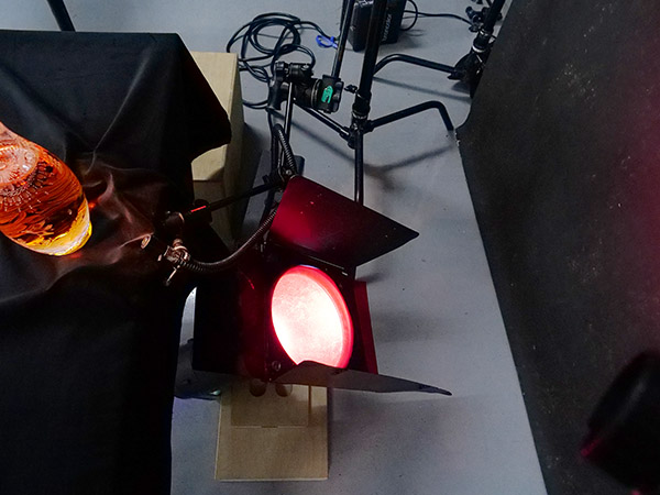 デキャンタの斜め上からスヌート・グリッドをつけたライト❸&