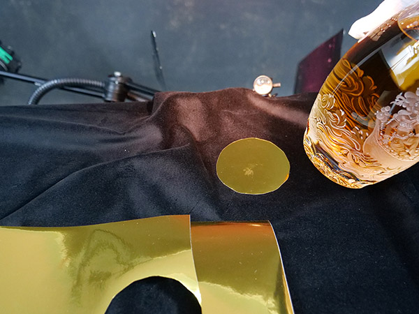 デキャンタにウィスキーを入れて黒布の上に配置。