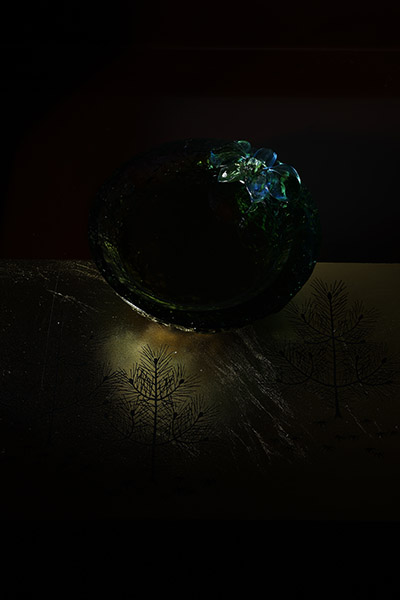 深みのある緑のガラスに キャッチを入れる