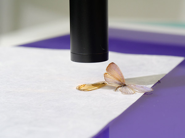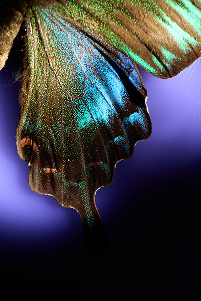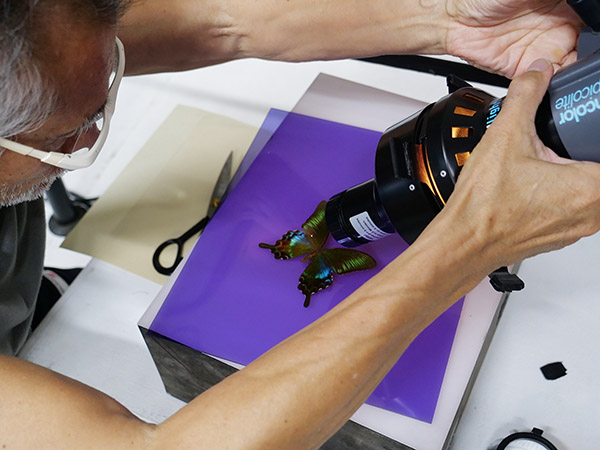 蝶の標本を題材に、超接写&近接ライティングに挑戦する。