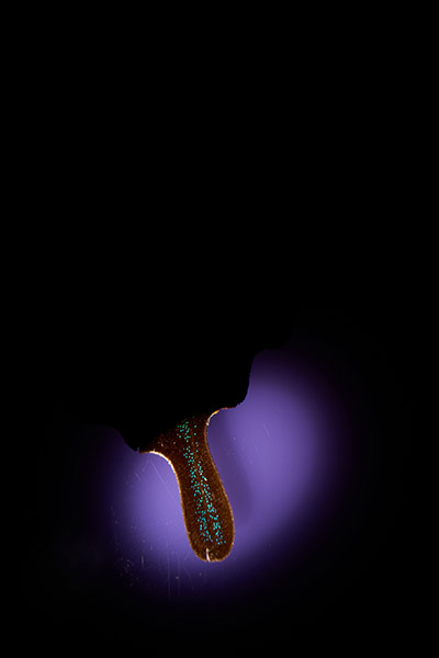 光ファイバーライト❷をあてる。