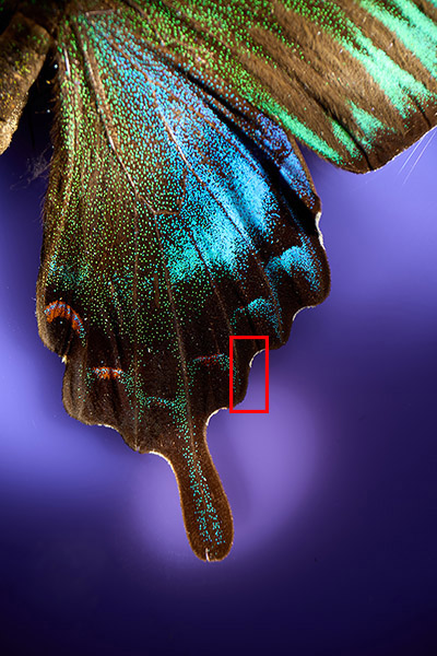 スーパーマクロレンズで蝶の翅を接写する