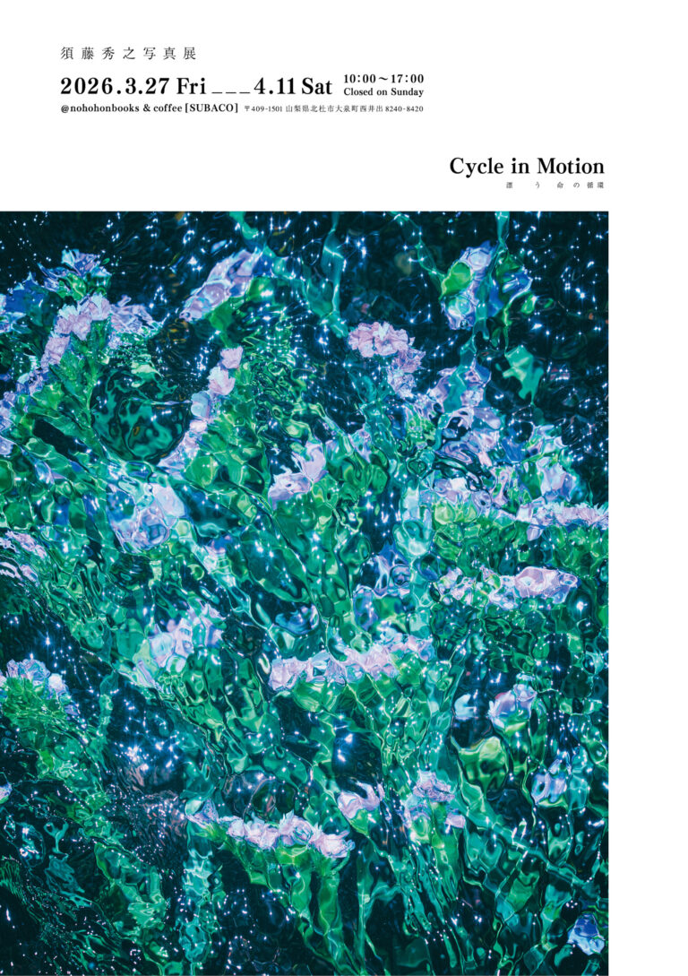 フォトグラファー須藤秀之の写真展「Cycle in Motion」が、山梨県北杜市・八ヶ岳南麓にある書店兼カフェ「のほほん BOOKS&COFFEE」の庭に設けられたギャラリー「SUBACO」