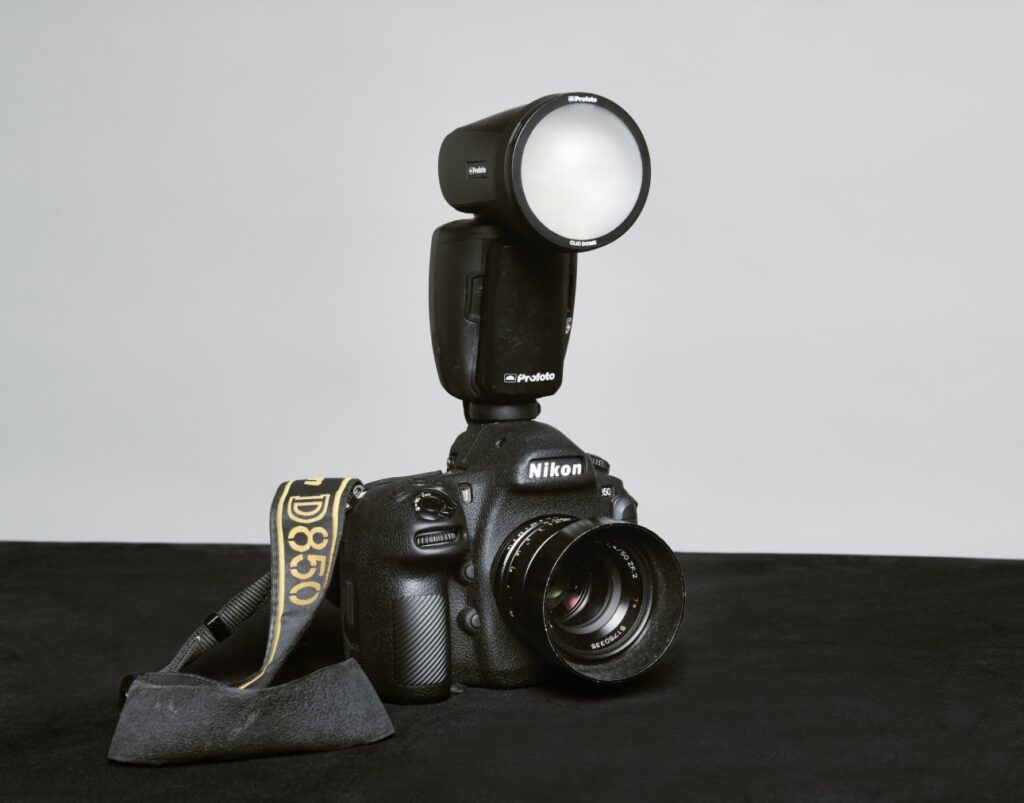 ニコンD850。学生時代に買ったカメラを今も使っています。傷つきそうだなと思って買ったカバーのおかげか、今も現役です。ニコンは壊れにくいという話を聞きますが、実感しています(笑)。